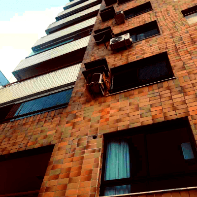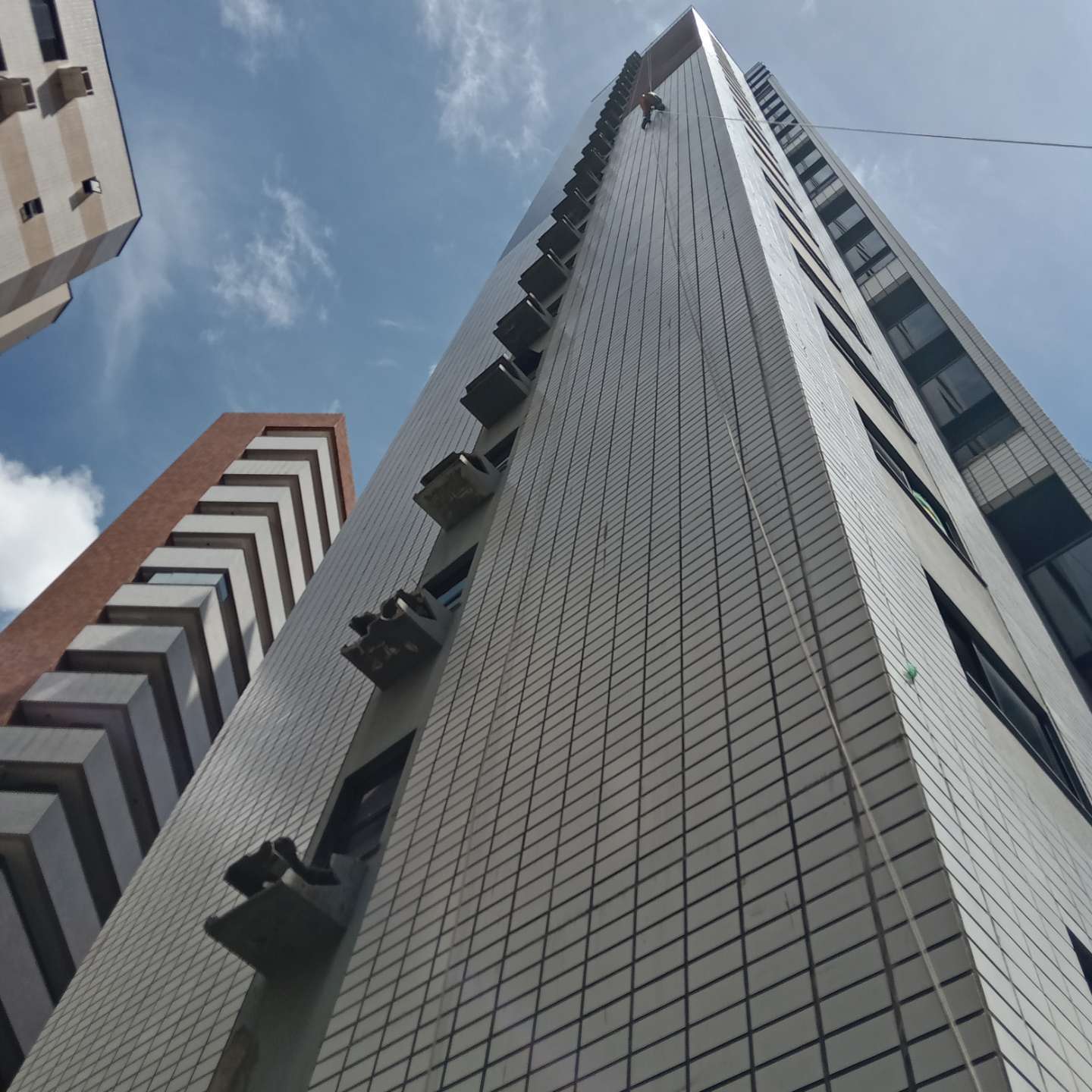 Aplicação de textura na fachada do prédio.